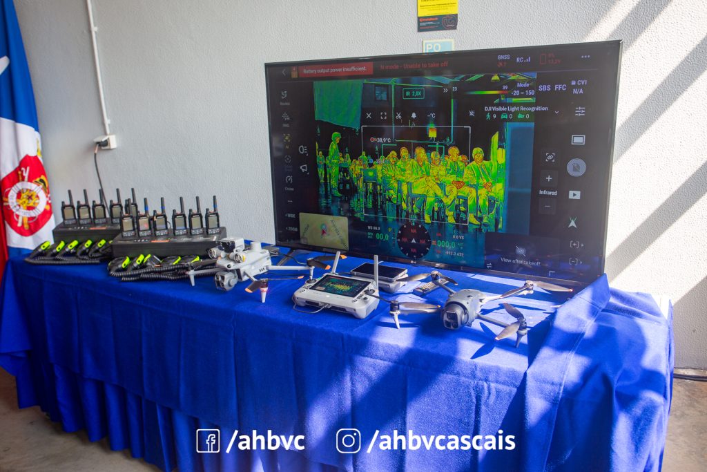 Na vertente tecnológica, demos a conhecer parte do novo núcleo de Sistemas de Aeronaves Não Tripuladas — os drones DJI M30T e M4T, equipados com câmaras térmicas e zoom óptico. Estas plataformas permitem-nos avaliar incêndios, localizar vítimas em zonas de difícil acesso e transmitir imagem em tempo real para o posto de comando.